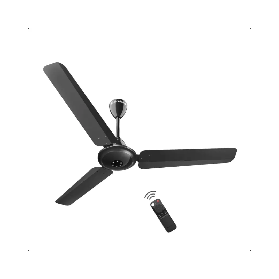 The Atomberg Efficio Alpha 1200mm ceiling fan features energy-efficient BLDC technology, providing superior air delivery of 230 CMM at 360 RPM while consuming only 28W (at speed 5). With a 5-star rating, the Efficio Alpha remote ceiling fan saves up to 65% in electricity consumption. The Efficio Alpha 1200mm ceiling fan includes a convenient IR remote for easy control of fan speed and has unique features like boost mode, timer, and sleep mode. With its classic-fan design and LED light, the Efficio Alpha ceiling fan enhances your home decor. The Efficio Alpha remote 1200mm ceiling fan provides consistent speed during voltage fluctuations and comes with a 1+1 year warranty. It is a perfect remote fan for your ceiling.